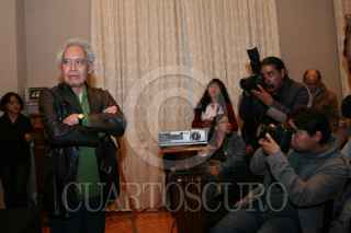 MÉXICO D.F. 11JUNIO2008.-Con motivo del 40 aniversario del Taller de Fotografía de Lázaro Blanco, se realizó la conferencia “Lázaro Blanco: Una Visión en el Tiempo” , además la recibió un reconocimiento por su trayectoria, todo esto en La Casa del Lago del bosque de Chapultepec.En la imagen es acompañado por los fotógrafos, Pablo Ortiz Monasterio, Crista Crow y Fabricio León. FOTO: GUILLERMO PEREA/CUARTOSCURO.COM