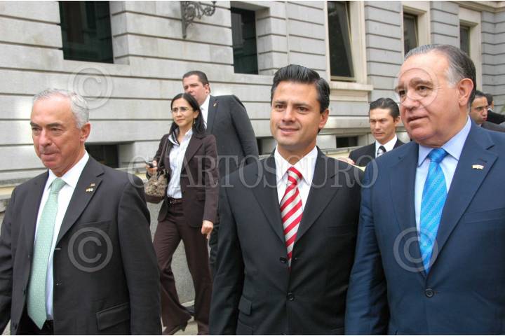MADRID, ESPAÑA, 12JUNIO2008.-Enrique Peña Nieto, Gobernador del Estado de Mèxico y Valentín Diez Morodo, empresario, durante la gira que realizó el Presidente de la Republica, Felipe Claderón Hinojosa en España. FOTO: CUARTOSCURO.COM