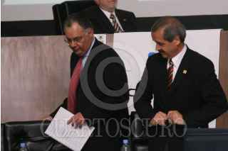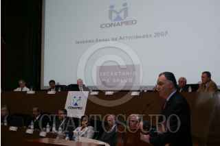 MÉXICO, D.F., 13JUNIO2008.-José Ángel Córdova titular de la Secretaria de Salud acudió al informe anual de la Comisión Nacional de Arbitraje Medico (CONAMED) que se llevo acabo en la unidad de Congresos del Centro Médico Nacional Siglo XXI.En la imagen es acompañado por Germán Fajardo Dolci, comisionado de la Comisión Nacional de Arbitraje Medico. FOTO:GUILLERMO PEREA/CUARTOSCURO.COM