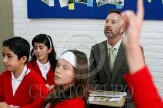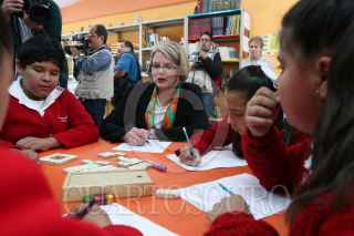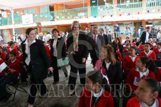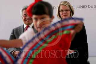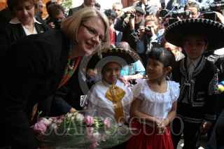 MÉXICO D.F. 13JUNIO2008.- Margaret Spellings, Secretaría de Educación de Estados Unidos, realizó una visita a la escuela primaria Estados Unidos de Amérca ubicada en la unidad Jonh F. Kennedy, en la colonia Balvuena, ahí los escolares le bailaron la culebra y puedo observar parte de los programas educativos como "Enciclomedia" que son aplicados en la educación básica de nuestro país. FOTO: MOISÉS PABLO/CUARTOSCURO.COM