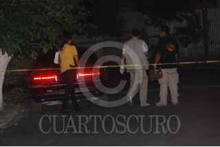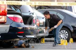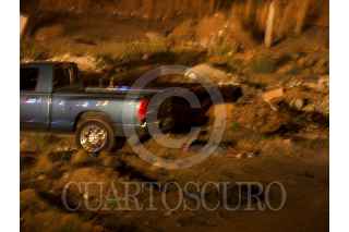 CIUDAD JUAREZ, CHIHUAHUA, 12JUNIO2008.- Los cuerpos de dos personas ejecutadas, un hombre y una mujer, fueron localizados la madrugada de este jueves en la parte posterior de una camioneta de lujo en un camino de terracería cerca del Paseo de la Victoria, encima del vehículo los matones dejaron una cartulina blanca con una leyenda amenazante. FOTO: BIENINFORMADO.COM/CUARTOSCURO.COM
