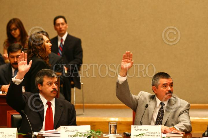 MÉXICO, D.F., 18JUNIO2008.- El senador Dante Delgado, consejero del poder legislativo, durante la sesión de dicho Instituto, donde se determino una sanción de 894 mil 30 pesos al PRD, por violar el Cofipe al usar la frase "presidente legítimo" en referencia a Andrés Manuel López Obrador. FOTO: ISAAC ESQUIVEL/CUARTOSCURO.COM