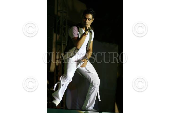 VILLAHERMOSA, TABASCO, 18JUNIO2008.- La vocalista de Banda Mix, Rosalia en su presentación ante el publico choco cautivo con su atuendo en el marco inaugural del programa especial "100 horas contra corriente" que se filmo en la capital debido a las pasadas inundaciones. FOTO: MARCO POLO GUZMÁN HERNÁNDEZ/CUARTOSCURO.COM