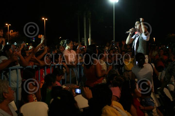VILLAHERMOSA, TABASCO, 18JUNIO2008.- La vocalista de Banda Mix, Rosalia en su presentación ante el publico choco cautivo con su atuendo en el marco inaugural del programa especial "100 horas contra corriente" que se filmo en la capital debido a las pasadas inundaciones. FOTO: MARCO POLO GUZMÁN HERNÁNDEZ/CUARTOSCURO.COM