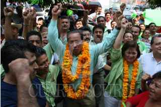 CHILPANCINGO, GUERRERO,18JUNIO2008.- Aspecto del registro de Fermin Alvarado Arroyo como precandidato del PRI a la alcaldía de Acapulco. Cabe mencionar que se rumora que es apoyado por los ex gobernadores Ruben Figueroa Alcocer y Rene Juarez asi como por el actual gobernador del estado Zeferino Torreblanca. FOTO: OSCAR ALVARADO/CUARTOSCURO.COM