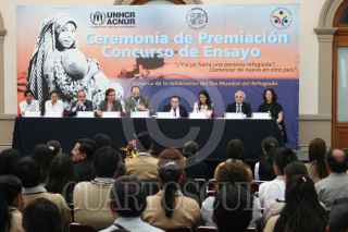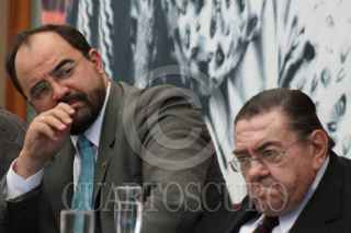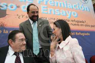 MÉXICO, D.F., 20JUNIO2008.- Gilberto Rincon Gallardo, presidente del concejo nacional para prevenir la discriminación, Emilio Alvarez Icaza presidente de la Comisión de Derechos Humanos del Distrito Federal, durante la segunda entrega del premio de ensayo, "¿ Y si yo fuera una persona refugiada....? Comenzar de nuevo en otro país". FOTO: RICARDO CASTELAN /CUARTOSCURO.COM