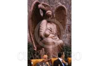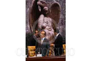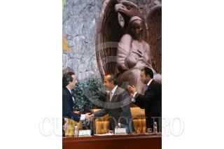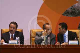 MÉXICO, D.F., 20JUNIO2008.- Juan Molinar Horcasitas director del Instituto Mexicano del Seguro Social, Felipe Calderon Presidente de México, Javier Lozano secretario del trabajo durante la XCIX asamblea general ordinaria del Instituto Mexicano del Seguro Social. FOTO: SASHENKA GUTIÉRREZ /CUARTOSCURO.COM