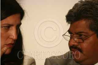 MÉXICO, D.,F 24JUNIO2008.- La diputada Kenia Lopez y Francisco Chiguil delegado de Gustavo A. Madero durante su comparesencia en la asamblea legislativa. FOTO: SÁSHENKA GUTIÉRREZ/CUARTOSCURO.COM