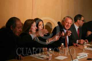 MÉXICO, D.F., 24JUNIO2008.- Sergio Sarmiento, Leo Zuckermann, Hector Aguilar Camin y Federico Reyes Heroles, en conferencia de prensa sobre "El estado que guarda el amparo de escritores academicos y periodistas". FOTO:RICARDO CASTELAN/CUARTOSCURO.COM