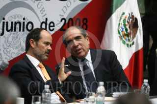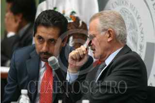 MÉXICO, D.F., 24JUNIO2008.- Gustavo Madero presidente de la mesa directiva de la cámara de senadores y el senador perredista Pablo Gomez durante el foro "destino de la renta petrolera en México. FOTO: SÁSHENKA GUTIÉRREZ/CUARTOSCURO.COM