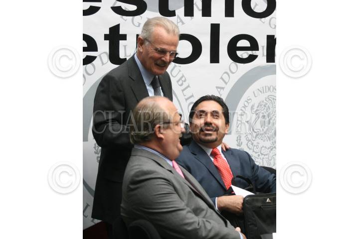 MÉXICO, D.F., 24JUNIO2008.- Manlio Fabio Beltrones, Ruben Camarillo, Gustavo Madero presidente de la mesa directiva de la cámara de diputados durante el foro "destino de la renta petrolera en México. FOTO: SÁSHENKA GUTIÉRREZ/CUARTOSCURO.COM