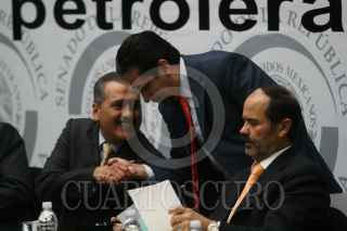 MÉXICO, D.F., 24JUNIO2008.- Manlio Fabio Beltrones, Ruben Camarillo, Gustavo Madero presidente de la mesa directiva de la cámara de diputados durante el foro "destino de la renta petrolera en México. FOTO: SÁSHENKA GUTIÉRREZ/CUARTOSCURO.COM