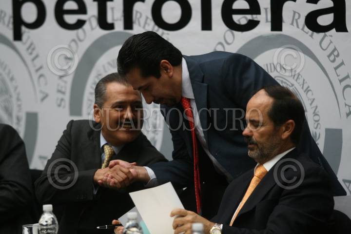 MÉXICO, D.F., 24JUNIO2008.- Manlio Fabio Beltrones, Ruben Camarillo, Gustavo Madero presidente de la mesa directiva de la cámara de diputados durante el foro "destino de la renta petrolera en México. FOTO: SÁSHENKA GUTIÉRREZ/CUARTOSCURO.COM