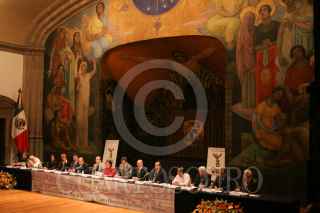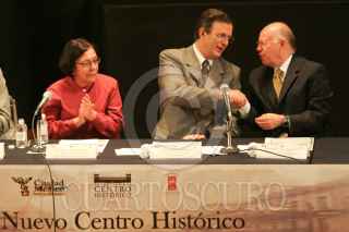 MÉXICO, D.F., 24JUNIO2008.- El Jefe de Gobierno Marcelo Ebrard Casaubon encabezo la presentación de los trabajos del Plan de Manejo del Centro Histórico con lo cual fueron convocados los poderes del gobierno locales y federales e instituciones académicas, el evento fue realizado con la presencia de la Doctora Alejandra Moreno Toscano autoridad del Centro Histórico, Lic. Alfonso de Maria Campos director general de INAH, Inti Muñoz Director General del Fideicomiso del Centro Histórico, y el Rector de la UNAM José Narro Robles. FOTO: HUGO CRUZ/CUARTOSCURO.COM