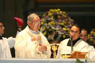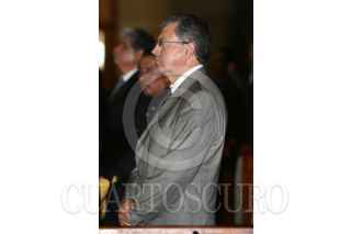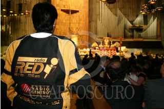 MÉXICO, D.F., 24JUNIO2008.- Directivos, empleados del Grupo Radio Centro, acompañaron a los 11 hijos a dar el último adios a María Esther Gómez de Aguirre, presidenta honoraria de Grupo Radiocentro, en la Basilica de Guadalupe. En la imagen el periodista Jacobo Zabludovsky trasmitio en vivo la misa. FOTO: SAÚL LÓPEZ/CUARTOSCURO.COM