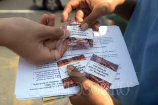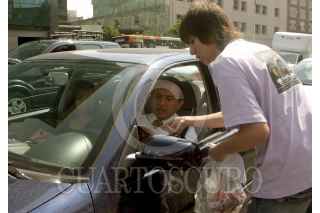 México D.F., a 25 de Junio de 2008.- En el cruce de Avenida Chapultepec y Balderas brigadistas invitan a la manifestación por el orgullo lésbico gay, que se celebrara con una marcha el proximo 28 de Junio del Angel de la Independencia al Zócalo de la Ciudad, además repartieron condones. FOTO: VICTORIA VALTIERRA/CUARTOSCURO.COM