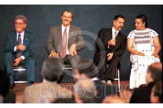 Leonardo Rodríguez Alcaine y Vicente Fox Quesada, durante la ceremonia oficial del Día del Trabajo, en la casa presidencial de los Pinos. FOTO: Victoria Valtierra/CUARTOSCURO.COM