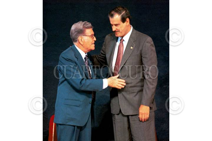 Leonardo Rodríguez Alcaine y Vicente Fox Quesada, durante la ceremonia oficial del Día del Trabajo, en la casa presidencial de los Pinos. FOTO: Victoria Valtierra/CUARTOSCURO.COM
