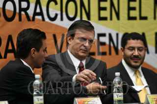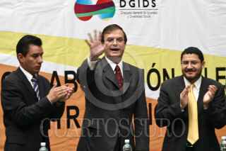 MÉXICO D.F., 26JUNIO2008.- El jefe de Gobierno Marcelo Ebrard Casaubon presidio la firma de convenio para el otorgamiento del programa “Seguro contra la Violencia Familiar” que se realizo en el Museo de la Ciudad de México. FOTO: RODOLFO ANGULO/CUARTOSCURO.COM
