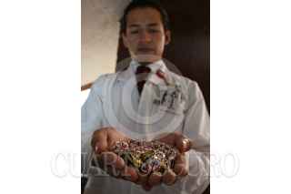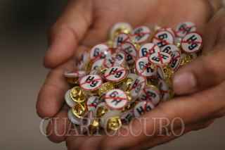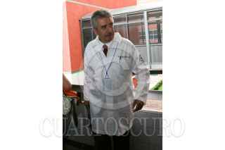 MÉXICO D.F. 30JUNIO2008.-Se realizó la Conferencia Internacional sobre la Sustitución y Reducción del Uso de Mercurio en Hospitales. En la imagen un enfermero muestra botones con el símbolo del Mercurio censurado. FOTO: GUILLERMO PEREA/CUARTOSCURO.COM