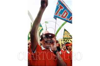 Al final del acto oficial de la CTM, encabezado por Leonardo Rodríguez Alcaine con motivo del día del trabajo. FOTO: Juan Pablo Zamora/CUARTOSCURO.COM