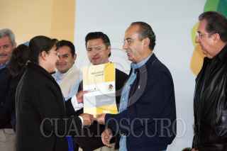 EJIDO TAPAXCO, ESTADO DE MÉXICO., 01JULIO2008 .- Felipe Calderon Hinojosa Presidente de México, durante la entrega de certificados agrarios al ejido de Tapasc, municipio de el oro. FOTO: ALFREDO GUERRERO/CUARTOSCURO.COM