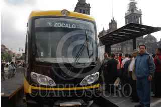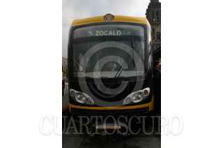 MÉXICO, D.F., 01JULIO2008.- Marcelo Ebrard, jefe del gobierno capitalino, inauguró el proyecto de Tranvia que recorrerá el tramo Buenavista Pino Suárez, este proyecto estara terminado en el 2010, así lo informó el mandatario, quien develó uno de los trenes que daran servicio en la linea. FOTO: RICARDO CASTELAN/CUARTOSCURO.COM