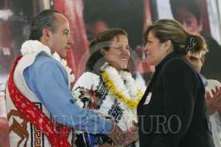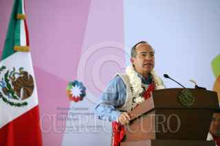 MUNICIPIO SAN FELIPE DEL PROGRESO., ESTADO DE MÉXICO 01JULIO2008 .- Felipe Calderon Presidente de México s durante la inaguración de la carretera San Francisco Tlalchichipa Rinconde los Pirules FOTO: ALFREDO GUERRERO/CUARTOSCURO.COM