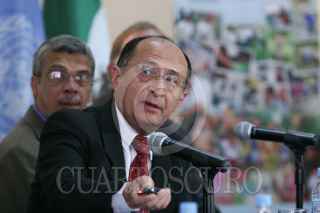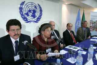 MÉXICO, D.F., 02JULIO2008.- Integrantes de la Organización Panamericana de la Salud presentaron los resultados del "Programa Regional de Acción y Demostración de Alternativas Sostenibles para el Control de Vectores de la Malaria sin el uso de DDT en México y Centroamérica". En la image de izquiera a derecha, Emilio Ramírez Pinto, Nezxa Paz, Luis Augusto Galvao, Mario Henry Rodríguez, director INNAP México, Keith Carter y Jean Betlem y la conferencia de prensa se realizó en el Centro de Información de las Naciones Unidas. FOTO: MOISÉS PABLO/CUARTOSCURO.COM