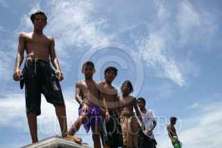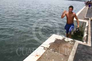 BOCA DEL RÍO, VERACRUZ 06JULIO2008.- Jovenes se lanzan al mar a sacar monedas que turistas les lanzan a las aguas Vercruzanas FOTO: SÁSHENKA GUTIÉRREZ/CUARTOSCURO.COM