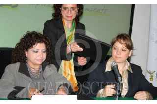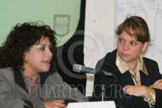 MÉXICO, D.F., 07JULIO2008.- Clara Brugada, Procuradora Social y Martha Delgado Peralta, Secretaria del Medio Ambiente del D.F durante la firma de convenios FOTO: RICARDO CASTELAN /CUARTOSCURO.COM