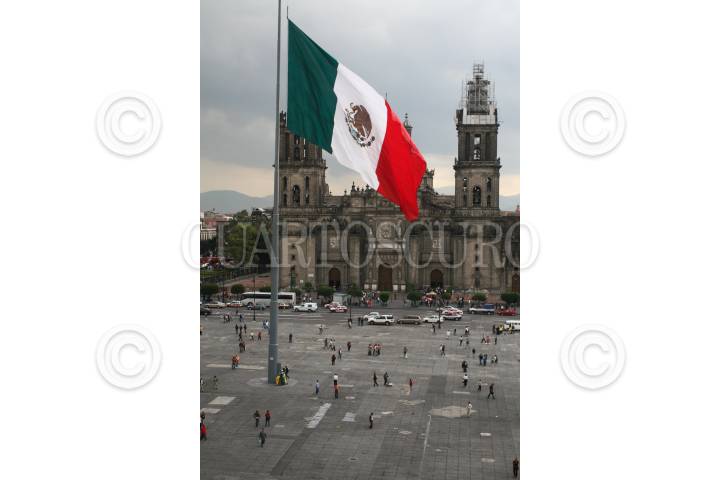 MÉXICO, D.F., 07JULIO2008.- La bandera de México fue reconocida como “La más Bonita del Mundo” en un concurso realizado en la página de internet de un diario español, con una puntuación final de 901.627 puntos. En la imagen, el asta bandera sobre la glorieta de San Jerónimo, el sur de la ciudad de México. FOTO: ISAAC ESQUIVEL/CUARTOSCURO.COM