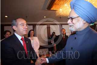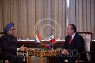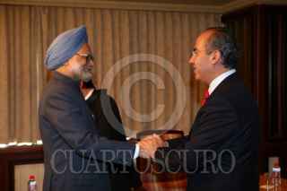 SAPPORO, JAPON., 07JULIO2008. -El Presidente de la Republica, Felipe Calderon Hinojosa durante la reunión Bilateral con Manmhan Sing, primer ministro de la India. FOTO ALFREDO GUERRERO/CUARTOSCURO.COM