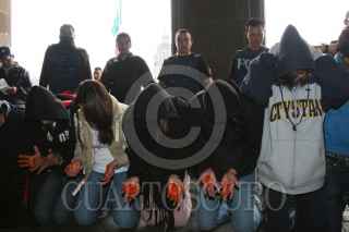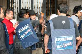 MÉXICO D.F; 08JULIO2008.-Un grupo de jóvenes realizaron una representación de los sucesos ocurridos en la disco New's Divine, esto a las afueras de las instalaciones del gobierno capitalino. FOTO: GUILLERMO PEREA/CUARTOSCURO.COM