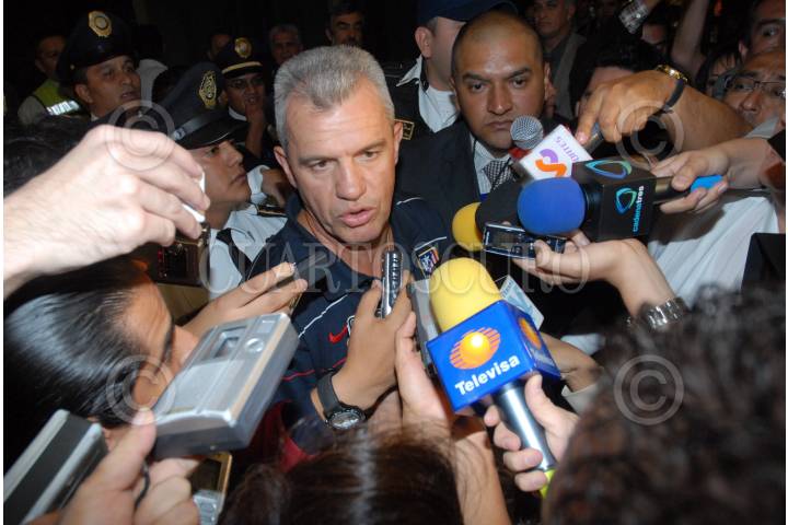 MÉXICO D.F., 11JULIO2008.- Esta tarde arribo a la terminal 2 del aeropuerto internacional de la ciudad de México el club español Atlético de Madrid comandado por el técnico Mexicano Javier "El Vasco" Aguirre. FOTO: FELIPE CASTELLANOS/CUARTOSCURO.COM