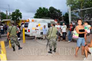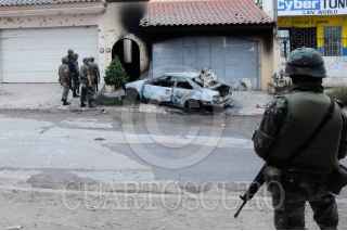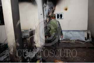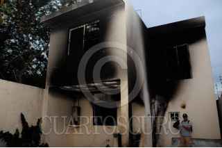 CULIACAN, SINALOA, 14JULIO2008.- Hoy en la madrugada fue baleada e incendiada una casa de seguridad de sicarios por un grupo rival, después de un enfrentamiento entre ellos los habitantes se dieron a la fuga por los techos de las viviendas aledañas, la casa esta ubicada por la calle 21 de marzo entre tulipán y gladiola de la colonia 10 de mayo de Culiacan, con un vehículo obstruyeron la cochera y en el interior del vehículo tenían dos tanques de gas, a los cuales les abrieron las válvulas para después hacerlos estallar en llamas a balazos. FOTO: EL DEBATE DE SINALOA/CUARTOSCURO.COM