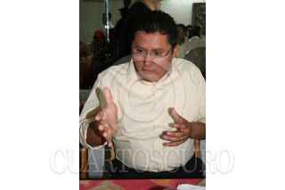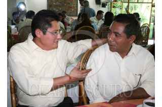 CHILPANCINGO, GUERRERO, 18JULIO08.- El candidato del PRD a la alcaldía de Chilpancingo Alejandro Mendoza Pastrana, durante la conferencia-desayuno que sostuvo con representantes de los medios de comunicación acompañado del diputado local del PRD Raymundo Garcia Gutierrez. FOTO: OSCAR ALVARADO/CUARTOSCURO.COM