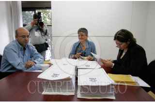 MÉXICO D.F., 19JULIO2008.- Ernestina Godoy Ramos, Presidenta de la Comisiòn Nacional de Garantias de Partido de la Revoluciòn Democratica, junto con otros integrantes entre ellos Renato Sales, durante la validaciòn de las ultimas elecciones para Presidente Nacional del PRD. FOTO: IVAN MENDEZ/CUARTOSCURO.COM