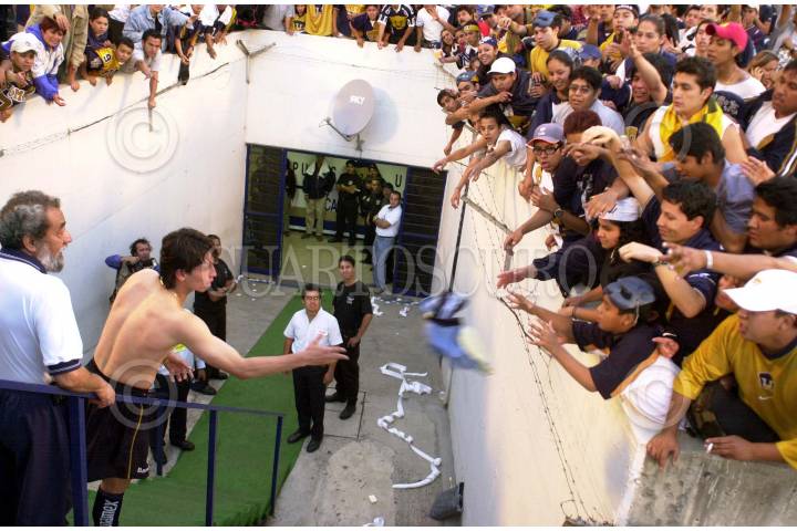 Seguidores de los Pumas de la UNAM, queman las banderas del america, despues de encuentro donde quedo fuera del la final del torneo de verano. FOTO: Juan Pablo Zamora/CUARTOSCURO.COM