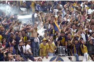 La porra americanista celebrando el pase de las Aguilas del America a la gran final del torneo de verano. FOTO: Juan Pablo Zamora/CUARTOSCURO.COM