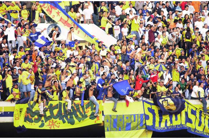 La porra americanista celebrando el pase de las Aguilas del America a la gran final del torneo de verano. FOTO: Juan Pablo Zamora/CUARTOSCURO.COM