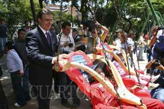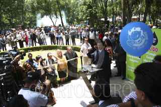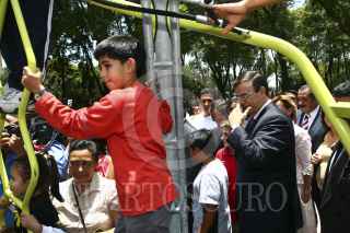 MEXICO, D.F., 21JULIO2008.- El jefe de Gobierno del Distrito Federal, Marcelo Ebrard, ofreció conferencia de prensa, al término de la inauguración de la zona de juegos en el Parque de los Venados. FOTO: ISAAC ESQUIVEL/CUARTOSCURO.COM