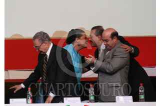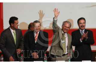 MÉXICO, D.F., 24JULIO2008.- Joaquín Gamboa Pascoe, dirigente de la CTM, Beatriz Paredes, dirigente nacional del PRI, Manlio Fabio Beltrones, coordinador de los senadores priistas y Jesús Murillo Karam, secretario general del partido, durante la sesión solemne de instalación de su Consejo Político Nacional, que se realizó en la sede central de la CTM. FOTO: MOISÉS PABLO/CUARTOSCURO.COM