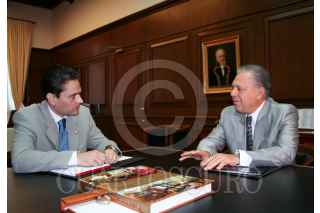 MÉXICO, D.F., 25JULIO2008.- El día de hoy el Secretario de Gobernación, Juan Camilo Mouriño Terrazo, se reunió con el Gobernador del Estado de Sinaloa, Jesús Aguilar Padilla, para conversar sobre la situación que enfrenta el estado en materia de seguridad pública y sobre los esfuerzos que realizan los tres órdenes de Gobierno en la lucha en contra del narcotráfico y el crimen organizado. FOTO: CUARTOSCURO.COM