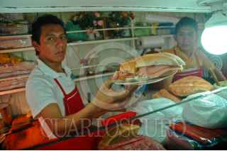 MÉXICO, D.F., 26JULIO2008.- Una torta esta lista para degustarse en un clásica torteria en los alrededores del metro Chilpancingo; este tradicional alimento que es consumido tanto por hombres, mujeres, niños y todo tipo de gente, tanto mexicanos como extranjeros. Coloquialmente se dice que es la Vitamina T por ser parte también de los tacos y tamales y que es parte de la tradicional dieta del mexicano aunque a venido perdiendo popularidad en cuanto a otro tipo de alimentos como la hamburgesa. FOTO: RODOLFO ANGULO/CUARTOSCURO.COM