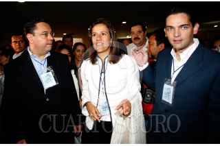 LEON, GUANAJUATO, 26JULIO2008.- German Martinez, Margarita Zavala y Juan Camilio Mouriño al termino de la reunion del Comite de Planeación Estrategica que buscará los triunfos de sus partido en las elecciones del 2009. FOTO. GUSTAVO BECERRA/AM DE LEÓN/CUARTOSCURO.COM