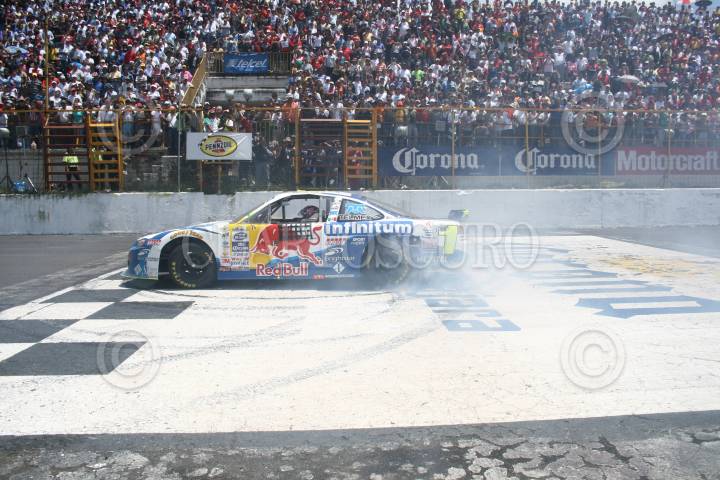 GUADALAJARA, JALISCO., 27JULIO2008.- El tapatio Antonio Pérez cruzo la linea de meta en primera posición por cuarta acasión esto dentro de la 9 fecha del serial Nascar México. FOTO: SÁSHENKA GUTIERREZ/CUARTOSCURO.COM