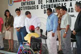 CHILPANCINGO, GUERRERO, 30JULIO2008.- Aspecto general de la "Entrega de Financiamientos para Actividades Economicas a Personas con Discapacidad" que llevo a cabo el gobernador del estado Zeferino Torreblanca Galindo acompañado del alcalde Mario Moreno Arcos, la presidenta del DIF estatal Roxana Torreblanca Galindo, del encargado de despacho de la SEDESOL Heriberto Pastrana y del alcalde de Leonardo Bravo (Chichihualco) Wilibaldo Valente Pastor en el palacio de gobierno. FOTO: OSCAR ALVARADO/CUARTOSCURO.COM