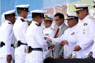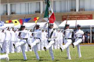 ALVARADO, VERACRUZ. 31JULIO2008.- El secretario de Marina, Mariano Francisco Saynez Mendoza, acompañado por el gobernador del estado, Fidel Herrera Beltrán, presidio la ceremonia de graduación de doscientos diez especialistas militares entre Mecánicos, Intendentes y de Enfermería naval egresados del centro de capacitación de la Heroica Escuela Naval Militar. FOTO: JOSÉ CANDEALRIO/CUARTOSCURO.COM