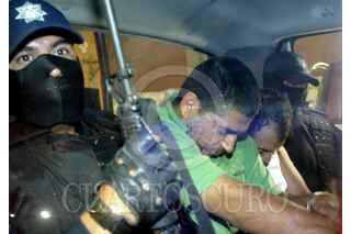 MÉXICO, D.F., 01AGOSTO2008.-Eligio Tamayos Ríos y Eleazar Beltran Beltran, sicarios del cartel de Sinaloa que fueron dentenidos en Culiacán con armamento y equipo tactico de uso exclusivo de las fuerzas federales, fueron trasladados esta madrugada a las instalaciones de la SIEDO. FOTO: LUZ ACEVEDO/CUARTOSCURO.COM